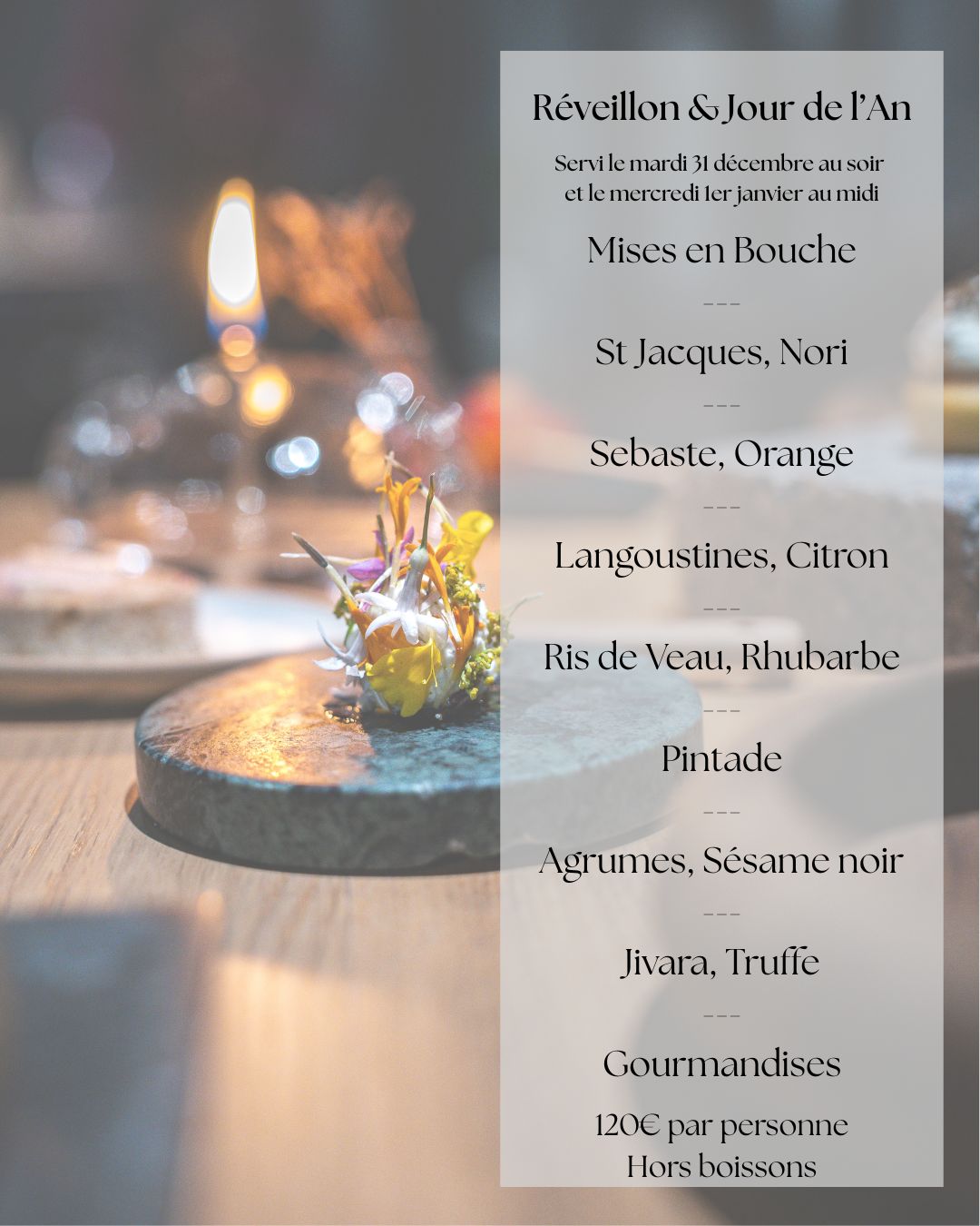 Disponible le 31 Décembre au Diner & 1er Janvier au déjeuner.